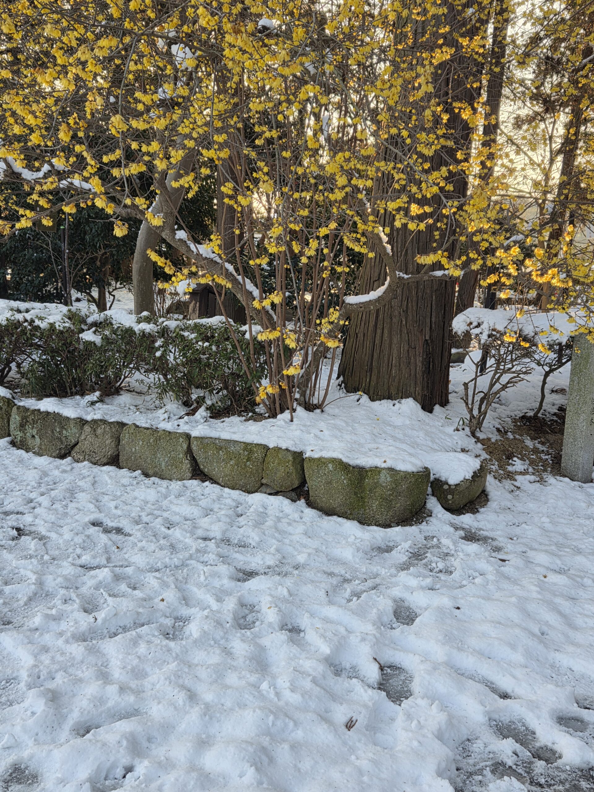 ただ駐車場内の境内の中は、雪が残っております。